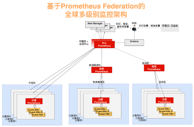 图2-1 基于Prometheus Federation的全球多级别监控架构