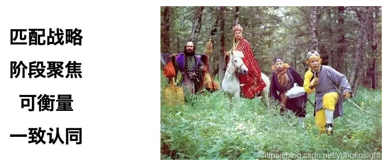 这四个目标虽然各不相同,但都有共同的目标——护送唐僧取得真经,非常完美的匹配唐僧第一阶段的战略目标。这就好比一个公司,每个部门可以有自己的小目标,但必须支撑大目标,同时通过达成大目标来成就个人。