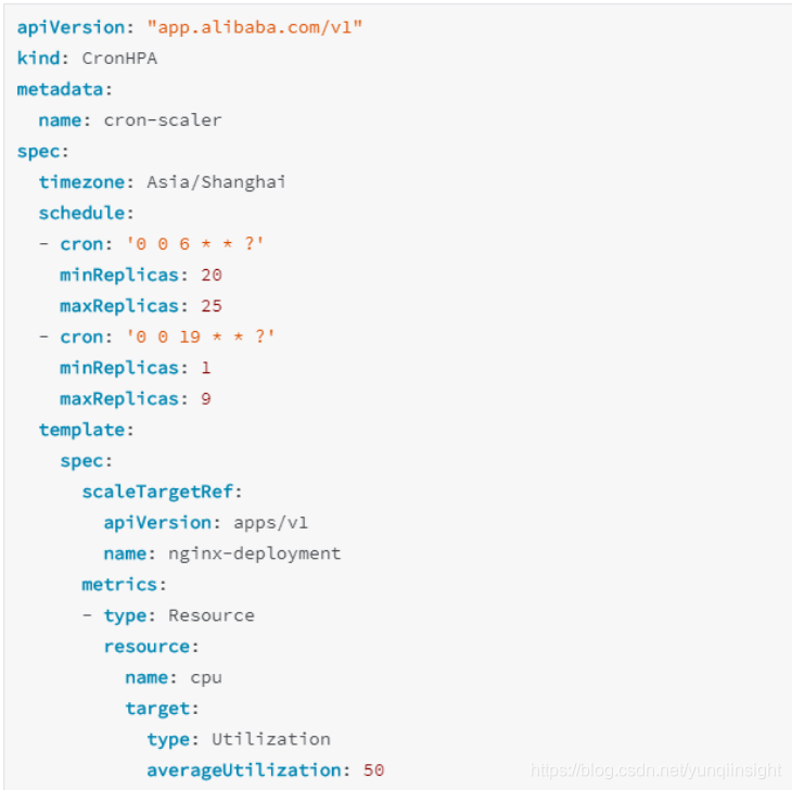 我们来看一个例子,基础设施团队最近开发上线了一个新的插件,叫做 CronHPA,一个具体的 Spec 如下所示。