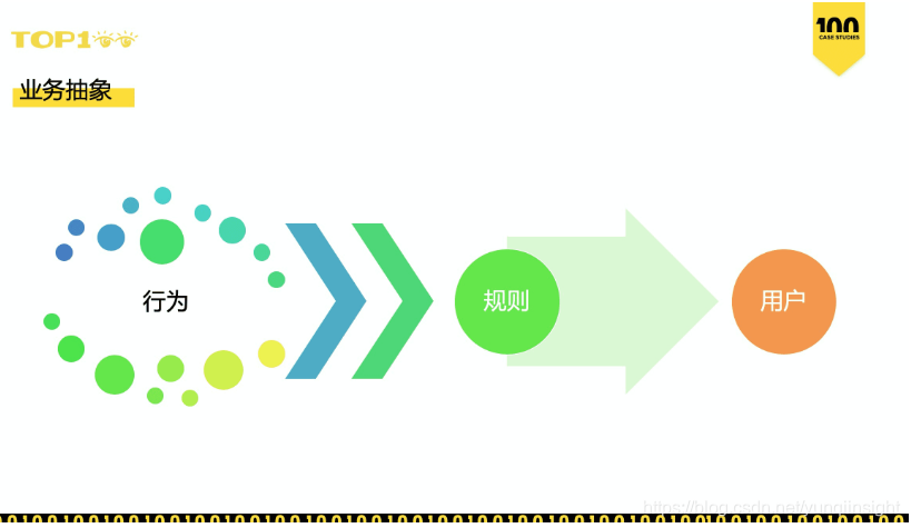 针对上述问题,我们先做了一层业务抽象。运营先通过对用户的各种行为进行一个分析和归类,得出一个共同的具体的规则,再将这个规则实时地作用到用户身上进行干预。