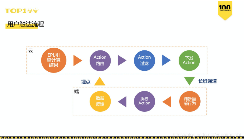 通过切面的方式拦截所有的网络请求和行为打点,再记录到服务端日志流里。同时通过一个事实任务对事件流进行清洗,按前面定义的格式清洗出我们想要的事件。再将清洗后的日志输出到另一个日志流里,供EPL引擎来读取。