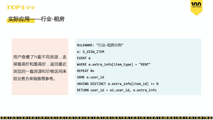 在上述鱼塘的例子里,可以看出来,我们这套方案已经有了一点算法推荐的影子了。在上述租房的例子里,由于规则过于复杂,用DSL表达起来很麻烦,所以就做成只采集4次浏览不同租房宝贝的规则,即触发后,就将这里的数据都给到租房的具体开发的业务方,这也是我们在落地过程中摸到的边界。