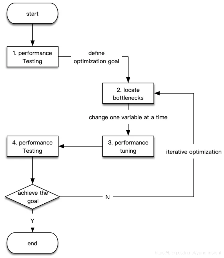 - 测试阶段:让调优过的应用进行性能测试,与准备阶段的各项指标进行对比,观测其是否符合预期,如果瓶颈点没有消除或者性能指标不符合预期,则重复步骤2和3。