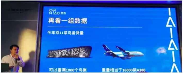 “今年我们双11整个备货量足可以塞满1000个鸟巢或者16000架A380飞机。菜鸟到现在为止成立了大概6年的时间,这6年其实菜鸟已经把科技塞到未来的每个毛细血管。”菜鸟北京技术中心资深技术专家陈罡(花名:行易)说道。
