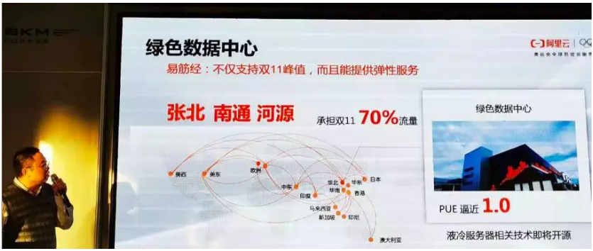 目前,阿里巴巴数据中心已经遍布了200多个国家和地区。这样分布广泛的数据中心被看作是易筋经一样的肋骨,是驱动阿里一切商业行为和商业流量的基础,不仅能够支持双十一的峰值而且能够提供弹性的服务。另外,液冷技术近期将会开源。