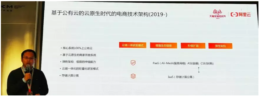 说到物理机,旭卿还介绍了第三代神龙架构,它可以提供的性能非常高,“我们网络的性能可以做到每秒2500万PPS的转发,这个已经是业界标杆的5倍,存储性能其实也做到了100万IOPS,是业界标杆的3倍,所以有了这样一个东西之后,我们承载双11大促这种业务的话,其实已经比物理机的性能要高很多了。”