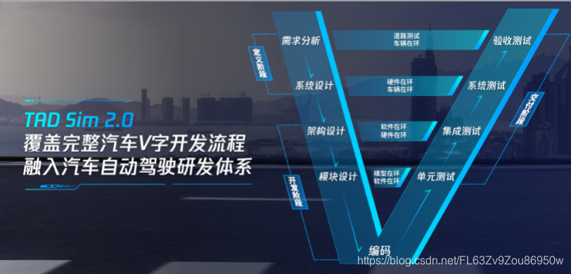 在2.0升级版本中,用户可根据自动驾驶测试的需求,结合路采的交通流数据,形成虚实一体的测试场景。通过完整的模型在环、软件在环、硬件在环、车辆在环的测试验证体系,TAD Sim 2.0覆盖了完整的汽车V字开发流程,并融入了自动驾驶研发体系。