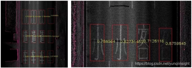 上述方案已经正式上线,并处理了大量数据,准召率都达到了生产作业的要求,同时算法对人工作业产线的效率提升作用日益提高。以下是部分效果图: