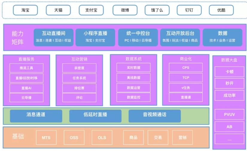 直播生态存在多种参与角色,包括达人、商家、机构、平台、用户;需要针对不同的角色来设计差异化的商业变现手段,2019 年淘宝直播全面升级开放体系,目前已支持微博、UC、优酷等多端通过开放体系接入淘宝直播,实现了内容在多平台随时开播的能力。