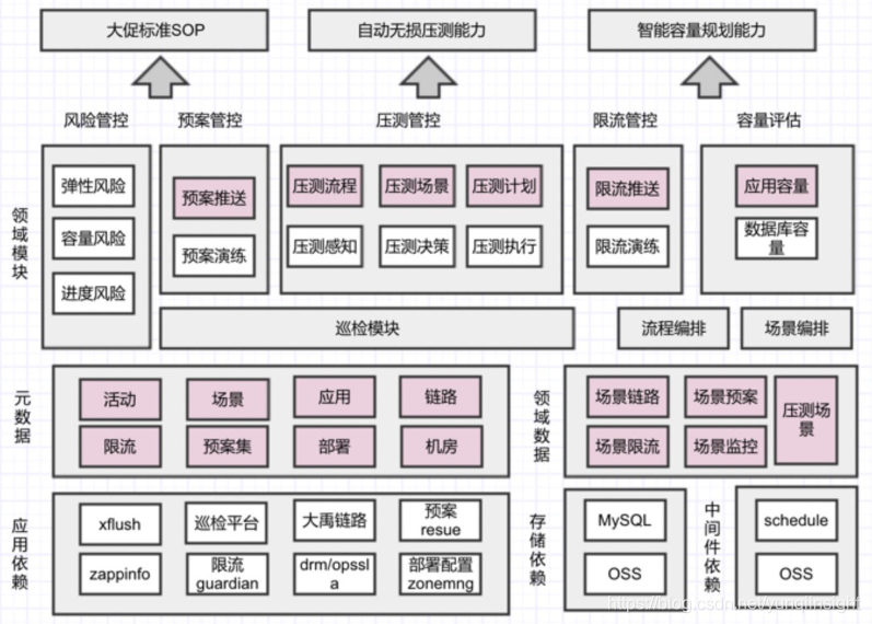 大促中控也就是一站式的大促保障解决方案,它的目的,就是将之前大促的经验沉淀下来,形成套路和规范,最终向无人值守方向发展,搞大促不需要技术人再熬夜了。
