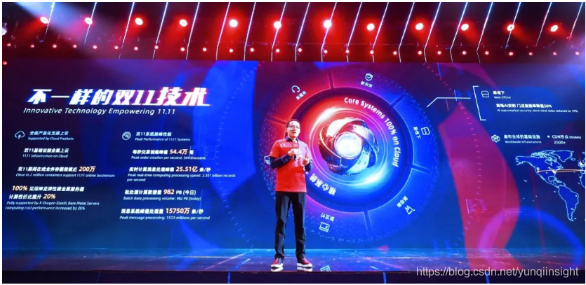 今天从飞天云操作系统到神龙服务器、数据库、交换机、交换机操作系统、RDMA网络,全部是阿里自研的。我们今天已经积累了非常丰富、非常强的能力,从硬件、数据库、云计算操作系统,到上面的核心应用平台,四位一体,这是这次双11跟往年最大不一样的地方。