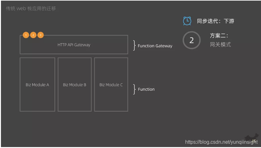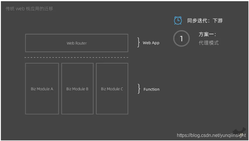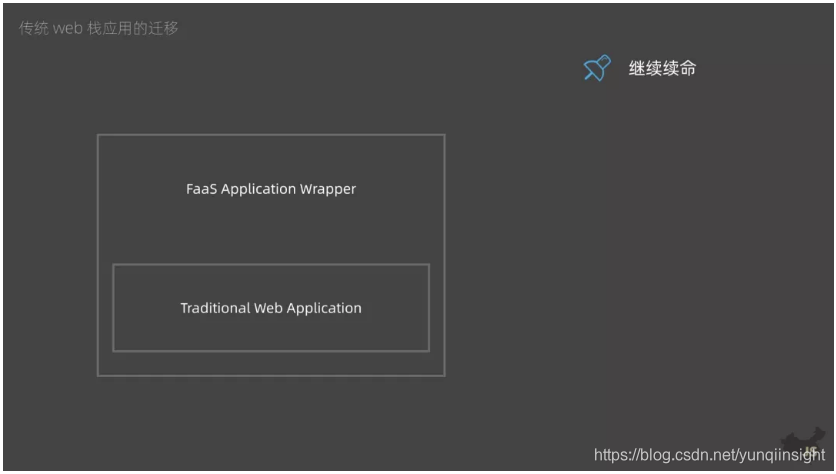 - 把整个传统应用作为一个函数,虽然不够优雅,但是能解决迁移的问题