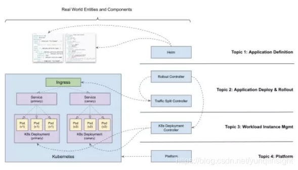 Kubernetes 本身并不提供完整的应用管理体系,这个体系是整个云原生的生态基于 K8s 构建出来的,可以用下图表示: