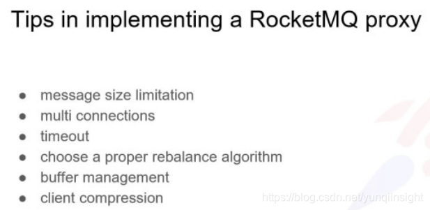 特别提醒一下, Proxy 拉消息都是通过 Slave 去拉,不需要使用 Master 去拉, Master 的 IO 比较重;还有 Buffer 的管理,我们是遇到过这种问题的,如果只考虑 Message 数量的话,会导致 OOM ,所以要注意消息 size 的设置,