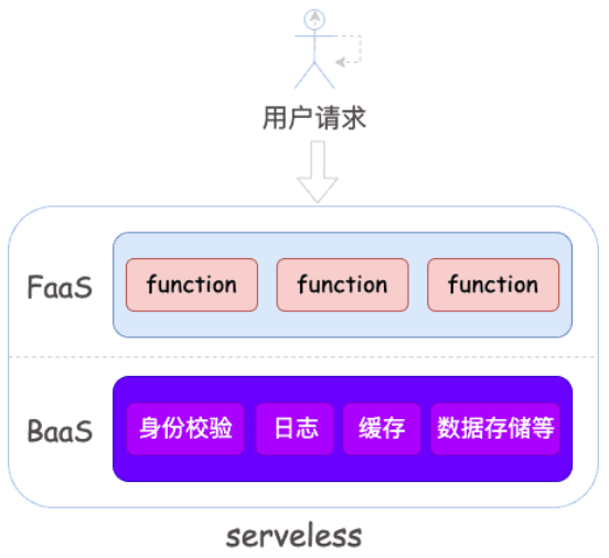 BaaS提供了用于函数调用的第三方基础服务,比如身份校验、日志、数据库等,它是有服务商直接提供,开发者无需关系实现,直接调用即可。