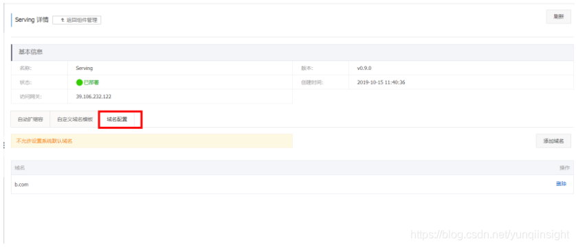 登录阿里云容器服务控制台,进入【Knative】-【组件管理】,点击 Serving 组件【详情】:
