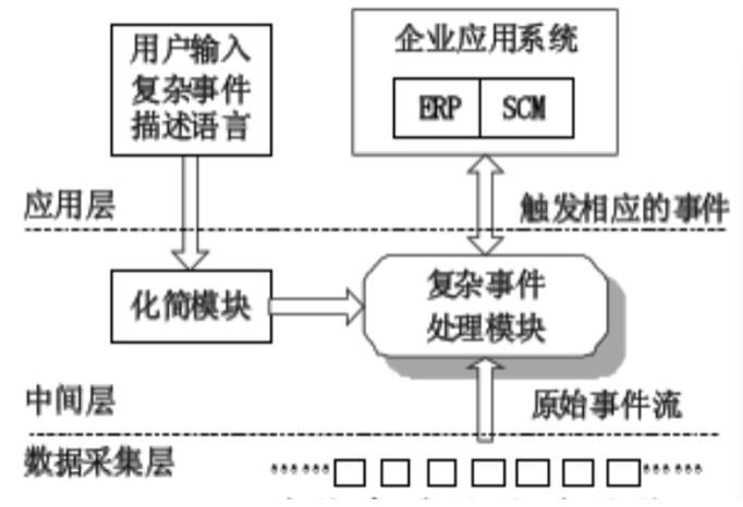 核心设计这一步很考验基本功和技术视野的,需要综合判断、权衡取舍,依据设计目标选出一个当前的最优解。在系统的设计目标中,其中一条,就是要标准化,标准化最大的好处是可以统一不变的接入。互联网是个发展只有不到30年的行业,但工业已经发展了几百年,很多互联网行业里的问题,在工业里已经有了标准化的定义。在搜集技术方案资料中,对RFID(射频识别)进行复杂事件的流处理的方案进入我们视野[参考1]。