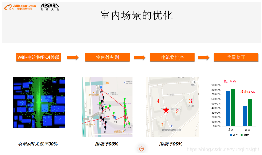 在室内的场景,需要解决的是如何去挖掘Wifi基站的位置,提升精度。