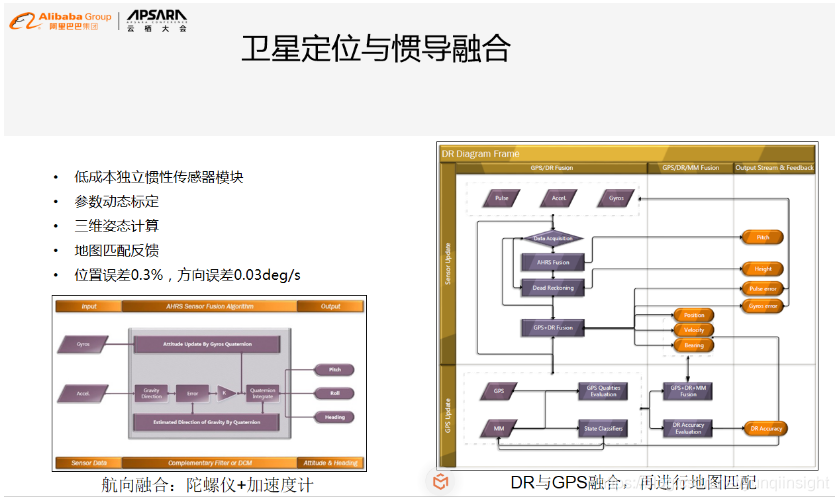 这里面关键的就是如何实现融合定位,比较有特色的一点就是我们做车机的传感器模块是低成本的,成本不到100元,其他类似产品成本是比较高的,可能需要几千块钱。使用低成本的器件,能够更容易得到普及。缺点是精度比较差,定位准确性差一些。要通过软件的方法弥补硬件上的缺点。