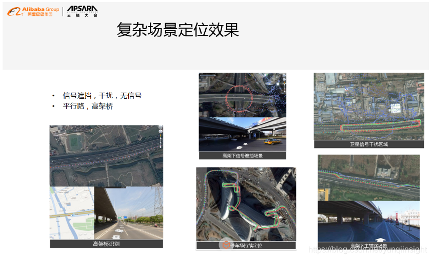 驾车场景,导航过程中可能会遇到的常见问题。第一个问题是无法定位,开到停车场或者有遮挡的地方,第二个场景是点会有漂移,因为GPS受到建筑或者其他遮挡的时候,会产生精度下降的情况。第三种情况是无法区分主路,可能会错过路口。