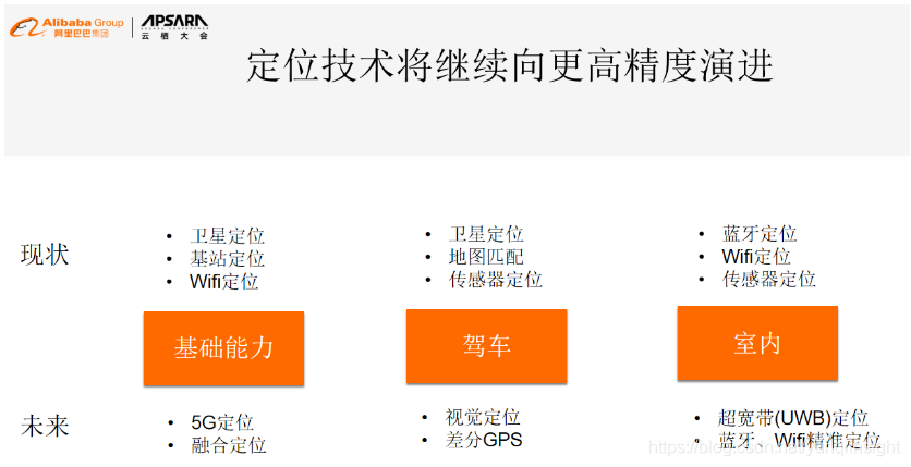 对未来定位技术发展的理解。基础能力部分,我们认为5G的出现会为定位提供一种新的可能性,因为5G的频率比4G更高,波长会更短。它可以测距,以前基于基站和Wifi的定位都是基于信号强度的。但是5G支持了测距以后,它就可以提供一个很好的精度,所以可能会出现一种方式,基于5G的定位可以达到类似GPS的效果。