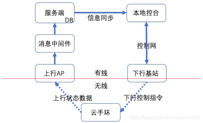在无线传输侧,采用上下行分离的方法实现实时上下行通信。系统架构如下图所示: