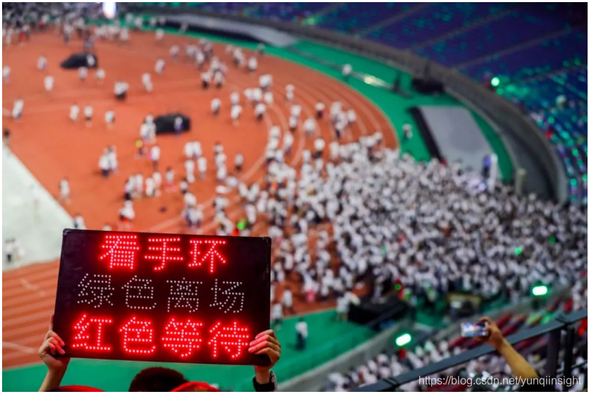 大型活动人数众多,撤场环节安全和用户体验至关重要,云手环作为现场唯一一个能实时感知用户信息,并能够实时触达到每个用户智能硬件设备,完美的完成了现场超过6万的观众的撤场引导工作。