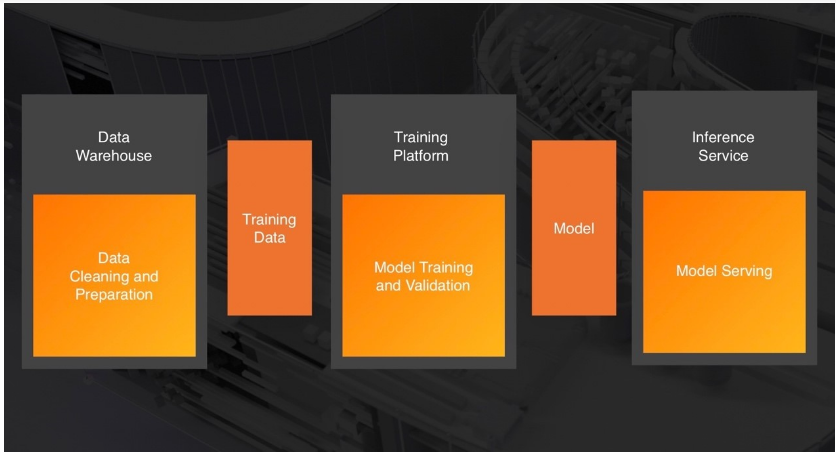 目前绝大多数公司的人工智能系统,会遵循这样一个架构:有一个数据仓库或集群进行数据清洗和预处理,然后取出一个表,和数据标注一起在一个模型平台上进行训练,训练出来的模型最后再部署到线上去进行预测。这整个流程经过了多个系统,所以这个数据事实上可能会有多份存储,加上模型的传输也会花费比较多的时间,你很难做到真正的实时性,这里面用户也往往需要研发多个平台和组件才能满足需求。