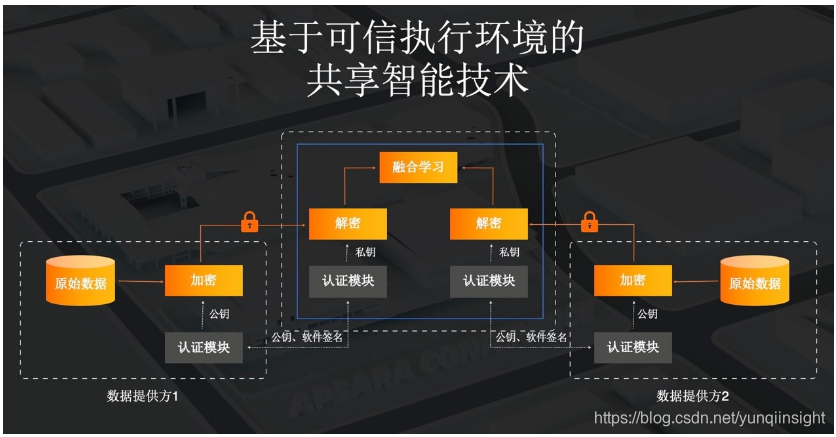 这种方案依赖可信硬件,通过数据加密的方式,集中传送到可信的平台。对于一些机构,本身就已经上云,把所有的东西都存放在云上面,所有的技术在云上面部署,那么采用这种方式非常快速便捷,同时又能达到很好的隐私保护的效果。