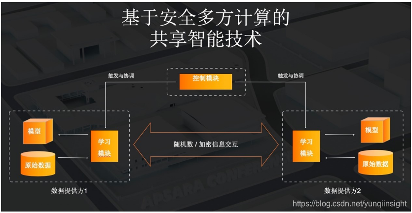 对于共享智能,我们希望达到的目标是数据可用不可见,在多方参与且各数据提供方与平台方互不信任的场景下,能够聚合多方信息进行机器学习,并确保各参与方的隐私不被泄漏,数据不被滥用。