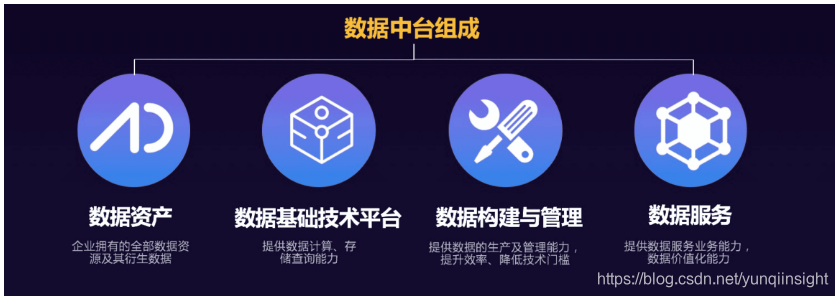 数据中台的概念来自于阿里巴巴“大中台,小前台”业务战略下的数据化实践,它是关于“数据价值化和数据资产化”的一整套解决方案,内容包括数据中台方法论,组织,数据产品三个方面。