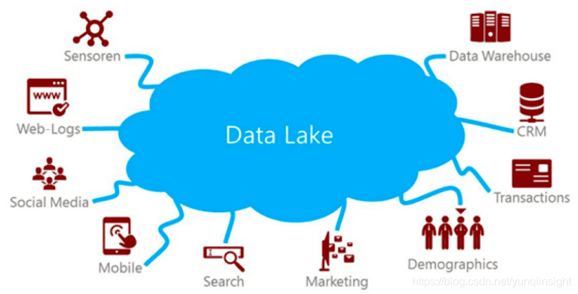 业界近3年对datalake说的比较多,是结合近10年来大数据理念兴起的,首次由Dan Woods在2011年7月福布斯上的“Big Data Requires a Big, New Architecture”中提出,它提出CIO们应该考虑数据湖(“Data lake”)这个思维方式来替代数据仓库(“data warehouse”)的思维,它的架构和理念是把原先不存储的基础数据也存储起来,汇总各个数据源的数据方便以后的数据分析和查询,因此数据湖是数据的聚集、加工为目的数据资源池,但是数据湖只是解决了聚集问题,在数据加工方面由于不可控制的需求变得异常繁重,由于数据的繁杂和混乱引入数据治理让数据的加工更是举步维艰。