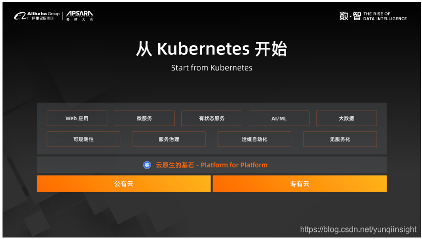 - 一是 Kubernetes 向下可以对接各种不同的资源层,既可以对接像阿里云这样的公有云,也可以对接专有云,因此可以利用 Kubernetes 构建混合云平台。