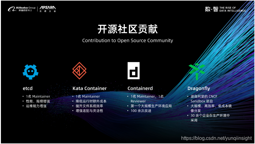 阿里巴巴与蚂蚁金服对于核心开源社区的云原生领域都做出了巨大的贡献,并且在 etcd、Kata Containers、Containerd 以及 Dragonfly 等项目中都有核心 Maintainer。除这些项目外,我们也会持续向 Kubernetes 等云原生其他领域提供贡献,希望通过我们的努力,可以让云原生成为一个稳定、可靠的技术,成为企业未来的 IT 基石。