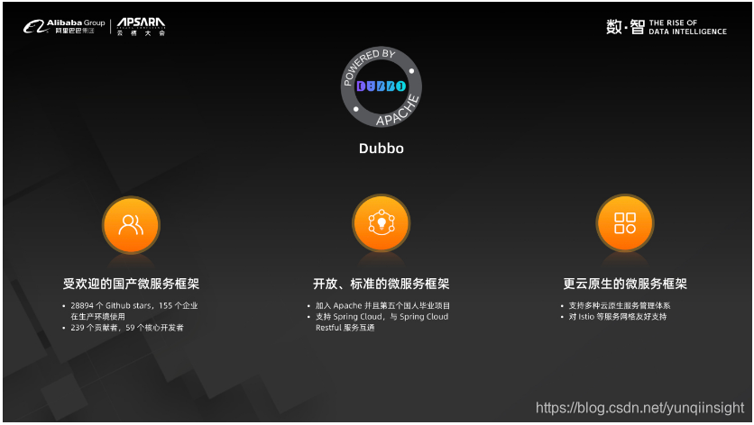 - 第三个目标是希望提升 Dubbo 本身的可观测性,支持 OpenTracing 等,使得基于 Apache Dubbo 构建的分布式系统能够具备更高的可运维能力。