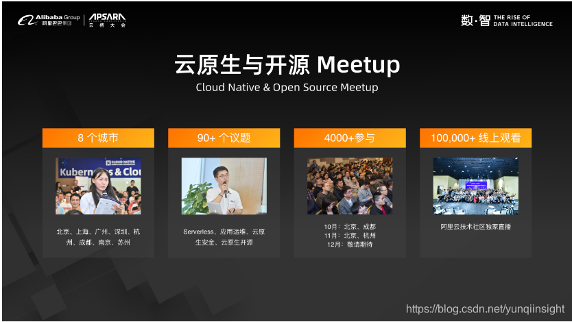 最后,阿里巴巴也在举办很多云原生以及开源相关的 Meetup,希望借助这样的活动拉近阿里巴巴和线下开发者的距离,倾听开发者的声音,了解开发者对社区的需求。也希望促进国内开发者的线下互动,增进相互了解,共同推动云原生领域在中国的落地和发展。