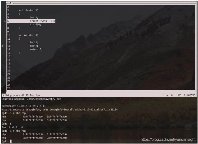 因为上次-0x4(%rbp)存了666,而第二次调用foo的rbp的值又和第一次一样,所以是一个地址。所以666就被打印出来了。