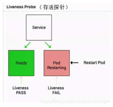 Liveness 指针也是类似的,它是存活指针,用来判断一个 pod 是否处在存活状态。当一个 pod 处在不存活状态的时候,会出现什么事情呢?