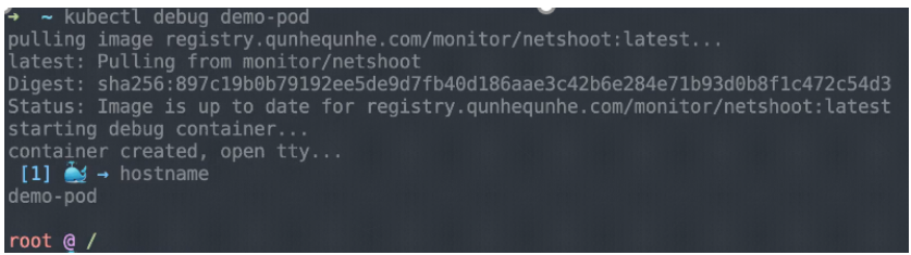 如果此时进行 logout 的话,相当于会把相应的这个 debug pod 杀掉,然后进行退出,此时对应用实际上是没有任何的影响的。那么通过这种方式可以不介入到容器里面,就可以实现相应的一个诊断。