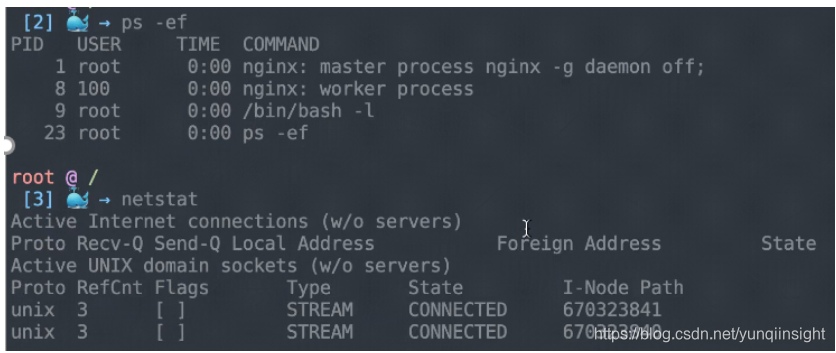 像这个例子里面,去查看类似像 hostname、进程、netstat 等等,这些其实都是和这个需要 debug 的 pod 是在同一个环境里面的,所以你之前这三条命令可以看到里面相关的信息。