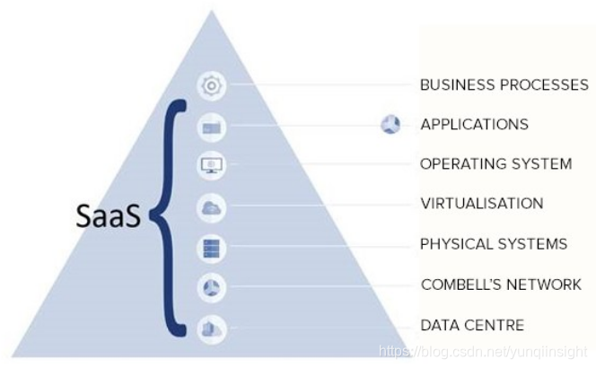 SaaS (Software as a Service) 软件即服务, 服务商提供基于软件的解决方案,如 OA、CRM、MIS、ERP、HRM、CM、Office 365、iCloud 等,客户不需考虑任何形式的专业技术知识,只需要通过服务商平台获取软件使用即可。