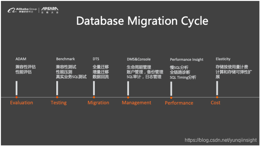 Oracle数据库迁移需要经过评估、测试、迁移、管理、分析诊断以及付费等诸多环节,而阿里云为用户在各个阶段提供了非常完善的功能。