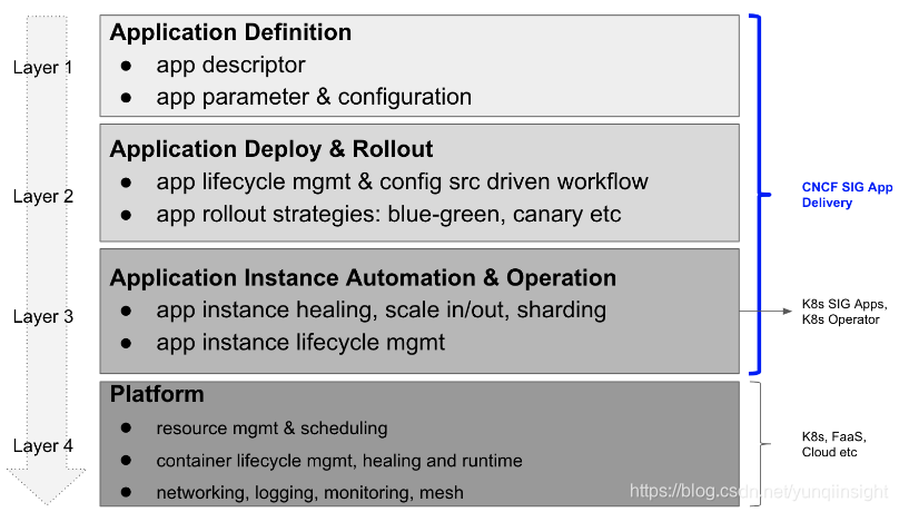 而本次 CNCF 应用交付领域小组所关注的,则是在“平台层”之上的“应用管理层”的技术架构和演进方向。这一层,也是未来云计算生态的价值聚焦点。