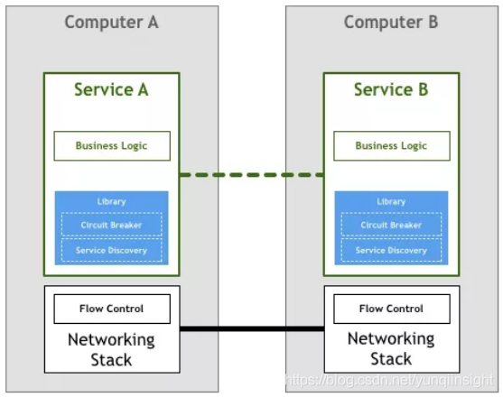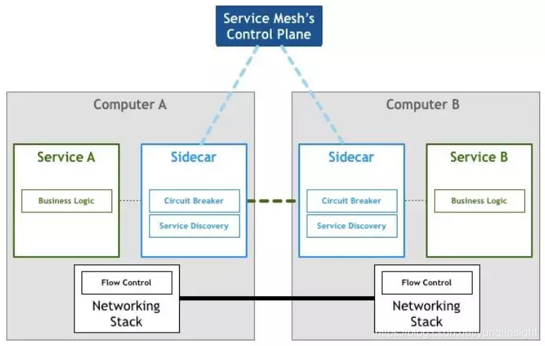 服务通信和治理本质是横向的系统级关注,是与业务逻辑正交的。但在微服务架构中,其实现方式和生命周期与业务逻辑耦合在一起的。