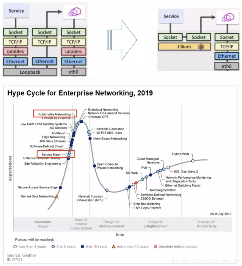 目前 Service Mesh 技术还处在技术成熟度曲线的初期,除了在 L4/L7 层提供灵活的服务通信功能,社区也在探索通过网络 Service Mesh[6] 实现灵活的 L2/L3 组网能力。我们相信其会成为未来企业分布式应用通信基础设施。