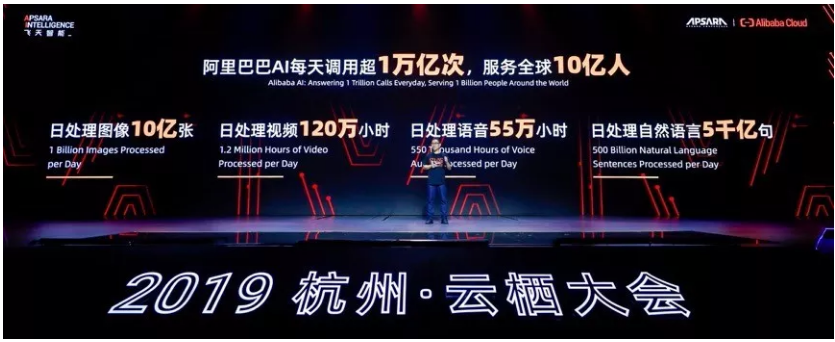 上午,阿里首次公布人工智能调用规模:每天调用超1万亿次,服务全球10亿人,日处理图像10亿张、视频120万小时、语音55万小时及自然语言5千亿句,已经成为中国最大的人工智能公司。