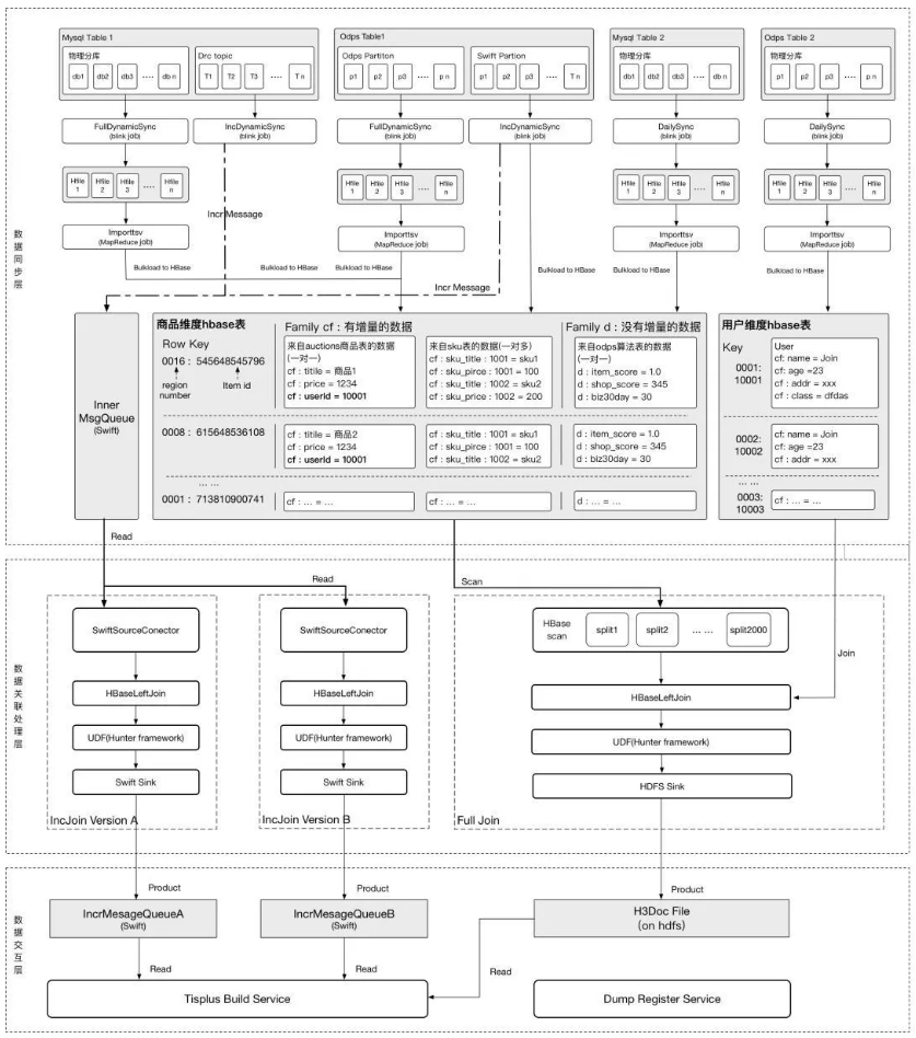 经过上述步骤后,最后将数据以xml的形式(isearch format)输出到HDFS/Pangu路径(全量)和Swift Topic(增量),引擎全量时通过HDFS路径获取全量doc文件进行build,增量时直接从swift topic中获取增量更新消息更新到引擎中。离线平台通过一个服务为Tisplus引擎模块提供表信息的查询等功能,以下是一个HA3表包含的信息:
