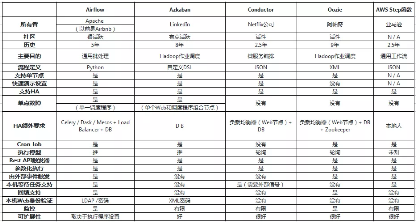 关于Airflow及其他工作流系统,对比陈列如下: