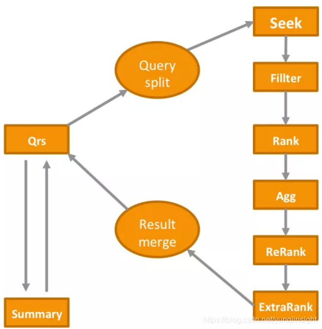 一次调用方的query服务,要经由qrs->query解析->seek->filter->rank(粗排)->agg(聚合)->rerank(精排)->extraRank(最终排)->merger->summary(取详情)的过程,具体描述如下:
