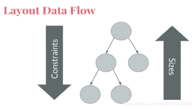 如上图所示,在一次遍历中,父节点调用每个子节点的布局方法,将约束向下传递,子节点根据约束,计算自己的布局,并将结果传回给父节点;